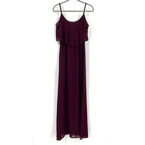 Show Me Your MuMu Caitlin Ruffle Maxi Dress Merlot Chiffon Medium NWT