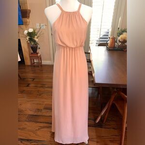 Show Me Your MuMu Chiffon Dusted Peach Backless Halter Maxi Gown XS Bridesmaid