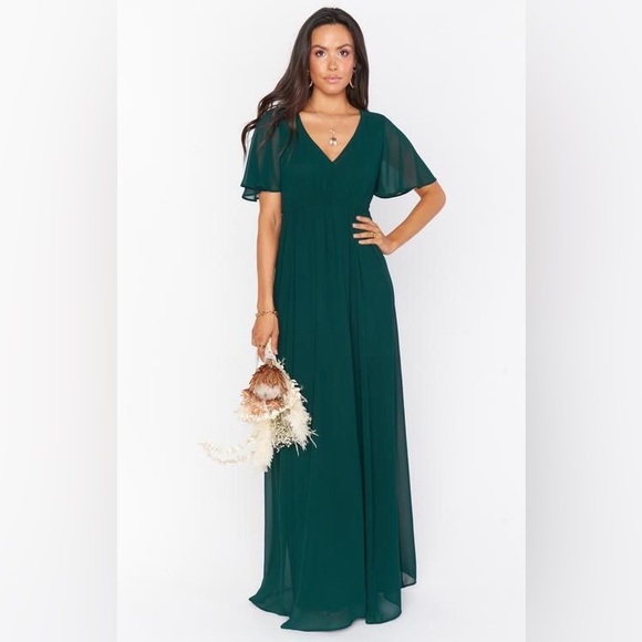 Chic dark green maxi dress with flutter sleeves. Perfect for elegant occasions. New with tags size medium. Great for your upcoming fall weddings