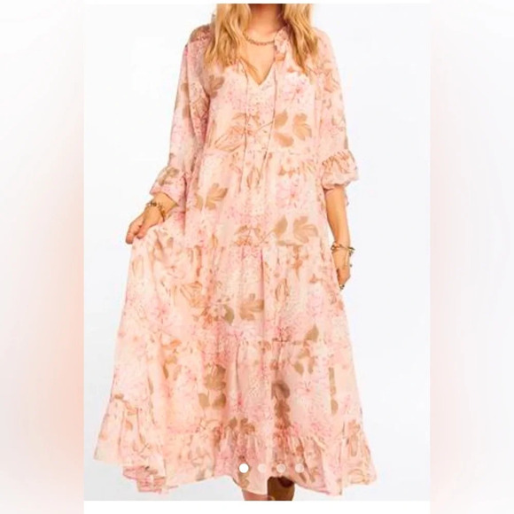 Beautiful show me your mumu peach dress/ gown size small. Detached slip for under the dress.