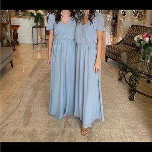 Light blue, x-small, worn once! Elegant silhouette with a flirty sleeve and an elastic empire band just below the bust to compliment all shapes and sizes as well as a baby bump!