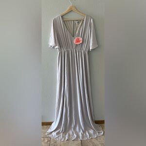 Bridesmaid, formal, special occasion, flowy, sleeves, beach, beachy, floor length, maxi, v neck, romantic, wedding