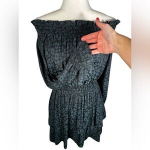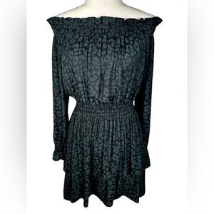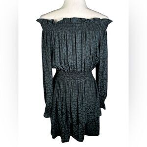 Show Me Your MuMu Esmeralda Black Smocked Silky Cheetah Off The Shoulder Dress