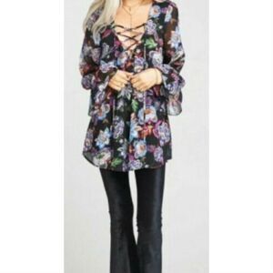 Show Me Your MuMu Floral Lace Up Tunic Dress Sz M
