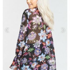 Show Me Your Mumu Tunic Perveen Lace Up Black and Purple Metallic Floral Size Medium