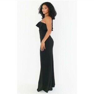 Show Me Your MuMu Florentine One Shoulder Maxi Dress Black Stretch Wedding Prom Bridal