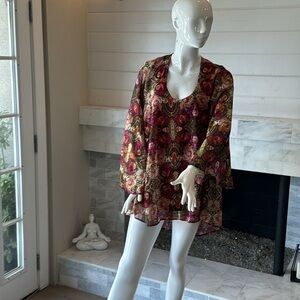 Show Me Your MuMu Gabby Low Back Swingy Floral Chiffon Mini Dress Size Medium