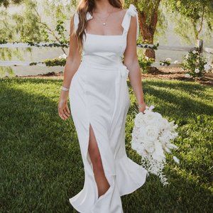 Show Me Your MuMu Garden Midi Bridesmaid Dress Ivory Luxe Satin Size XS