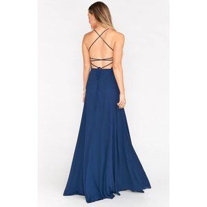 Show Me Your MuMu Godshaw Goddess Gown Dress Medium Strappy Back Rich Navy