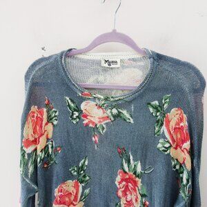 Show Me Your MuMu Gray Bonfire Sweater Sweetheart Marine Knit Floral Rose (M)