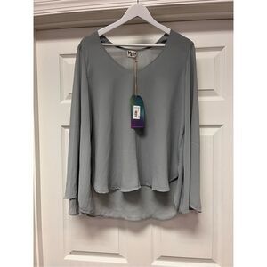 Show Me Your MuMu Gray Sheer V-Neck Wide Sleeve Blouse sz S NWT