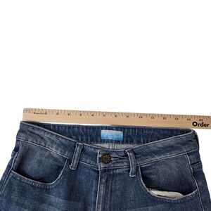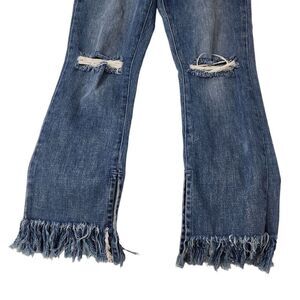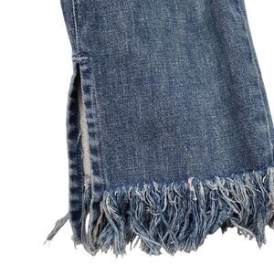 Stylish high rise jeans. Distressed knees. Frayed hem. Perfect for casual wear. In like new condition. Too snug in the thigh area for me, looking for a size 31, happy to trade!