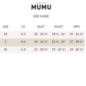 Please see all photos for Show me your Mumu size chart use as a reference a for best accurate fit.photos are part of my description