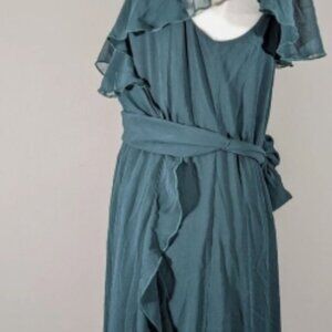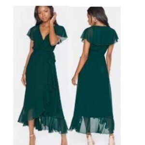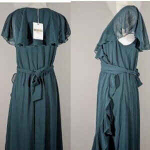 Show Me Your MuMu Jessie Ruffle Chiffon Bridesmaid Dress Emerald M 🆕⌚📦🏃💨🚚