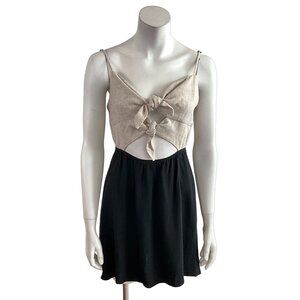 Show Me Your MuMu Layla Linen Blend Tie Dress Black Cream M