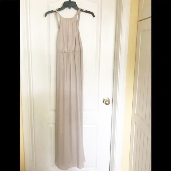 Show Me Your MuMu long tan maxi dress in size SMALL! Worn as a bridesmaid dress and/or as a guest to a wedding!