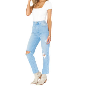 Show Me Your MuMu Midtown 90s Straight high-rise leg style is a nod to classic 90s fashion, offering both a trendy and timeless look. Crafted from a mid-wash stretch denim blend of 96% Cotton, 3% Polyester, and 1% Elastane, these jeans have a relaxed style with an elastic back for a gap-free fit. A wardrobe staple every cool girl needs, this pair of rigid denim features light-distressing and a full tapered leg. Complete the look with a bodysuit and oversized blazer.