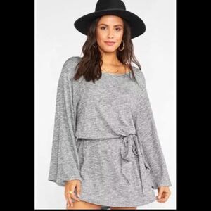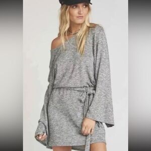 Show Me Your MuMu Monica Metall Knit Mini Popover Sweater Dress Long Kimono Sleeves and Removable Belt. Oversized Fit Could Fit A Medium Size.
