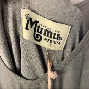 This elegant sundress by Show Me Your MuMu features a scoop neckline and a sleeveless design, perfect for casual resort wear. The soft gray color and flowing silhouette create a relaxed yet chic look, ideal for a day of leisure. Its full-length maxi style adds a touch of sophistication to your wardrobe.