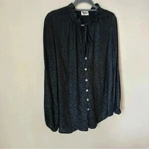 Show Me Your MuMu Navy Blue Black Leopard Print Long Sleeve Blouse Size Small