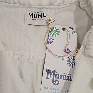 corduroy mini dress,cream mini dress,collared mini dress,detachable belt dress,front zip closure dress,show me your mumu dress
