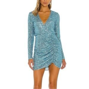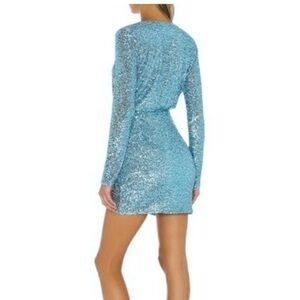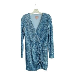 Show Me Your MuMu Party Hop Mini Dress Blue Sequins Long Sleeve Size Large