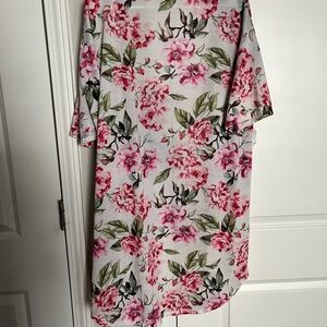 Elegant wrap with pink and green floral design. Perfect for layering.