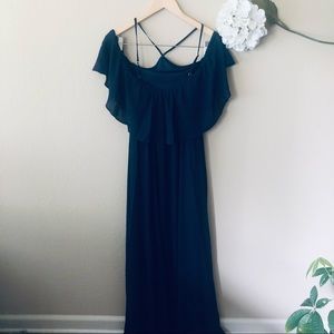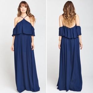 NWT Show me Your MuMu Rebecca Ruffle Maxi dress in navy blue.