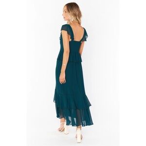 Show Me Your MuMu Reese Ruffle Midi Dress, Emerald Chiffon