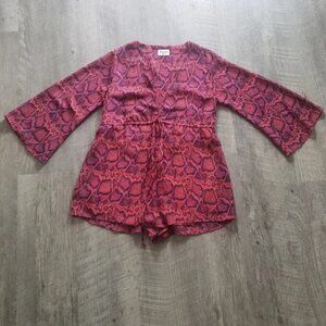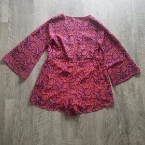 Show Me Your MuMu Roxy Python Romper with adjustable waist and shorts lined, size S.