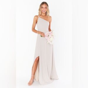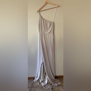 Bridesmaid, one shoulder, chiffon, wedding, formal, beige, cream, off white, summer, flowy, bridal shower, honeymoon, rehearsal dinner