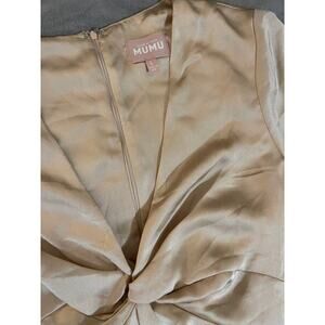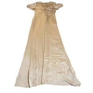 Show Me Your MuMu Size Large Rome Twist Gown Champagne Luxe Satin Beige Maxi Short Sleeve Formal Dance Prom Bridesmaid Wedding Homecoming Dances Sorority Winter Formal Balls Galas Spring Fling Sadie Hawkins
