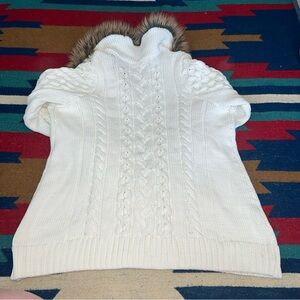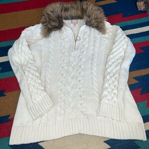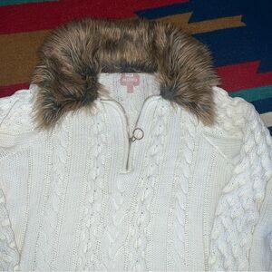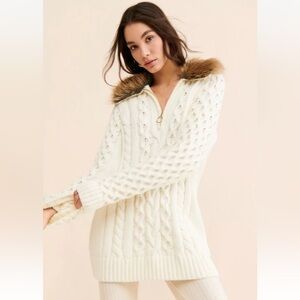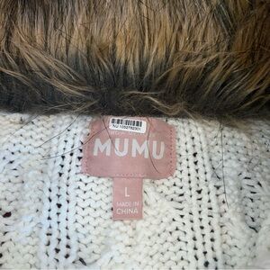Show Me Your MuMu Sun Valley Pullover in Cream Cable Knit with Faux Fur Large