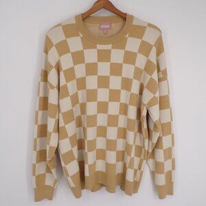 Show Me Your MuMu Sweater Beige Check Knit Pullover Crew Neck Women's Size Small