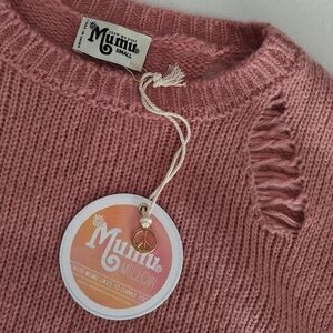 Show Me Your MuMu Sweater Crew Neck Distressed Oversized Knit Mulberry S NWT