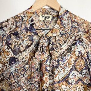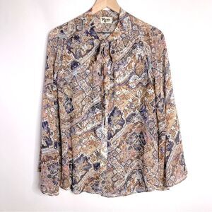 Show Me Your MuMu Taylor Tie Boho Top Blouse Chiffon Small Brown Blue