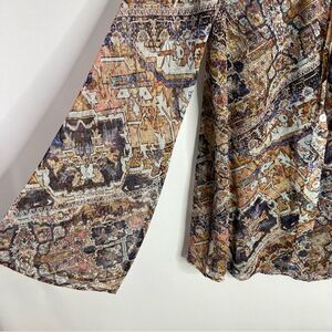 Show Me Your MuMu Taylor tie top. Size small. Blue and brown boho chiffon material. Ties at neck. Bell sleeves.
