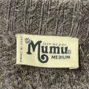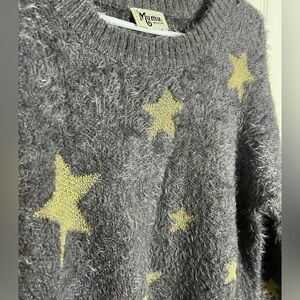 Show Me Your MuMu Textured Eyelash Gray Sweater Gold Sparkly Stars, medium