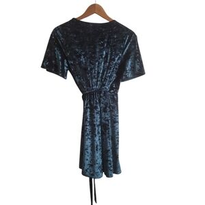 Show Me Your MuMu Velvet Short Sleeve Wrap Mini Dress Size XS Teal Blue USA