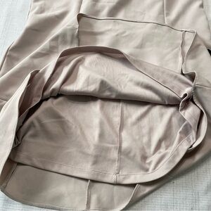 Gently used. Some discoloration on the inside of the bottom hem due to wear.
