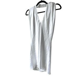 Elegant white mini dress. Halter neckline. Open back design. Perfect for any occasion.