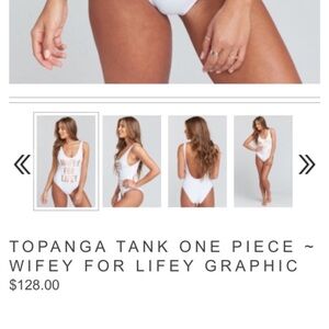 Show Me Your MuMu Topanga tank one piece wifey for lifey swimsuit. Features bold rose gold lettering 'Wifey For Lifey'. Worn once for max 2 hours , perfect condition, other than on bikini area the sticker stuck some and there is some sticky residue that will easily come off, it is not a stain. Perfect for your Bach, honeymoon, and any special moment in your bridal era!