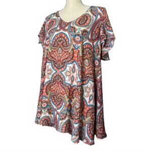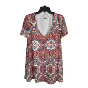 Show Me Your MuMu Womens Dress or Tunic Adult Size Small Peach Teal V Neck Lined
