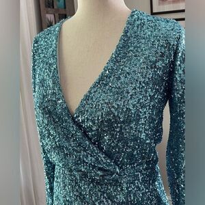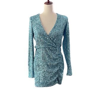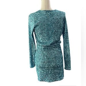 Show Me Your MuMu aqua blue sequin mini dress size small