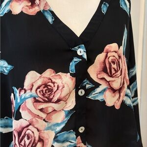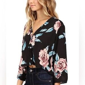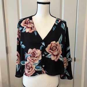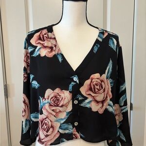 Item: Show Me Your MuMu floral black cropped button down flowy blouse