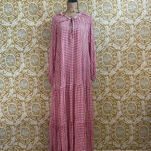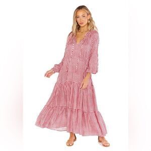 Show Me Your MuMu Birdie Ruffle Tiered Maxi Dress in Cherry Pie Gingham size XS