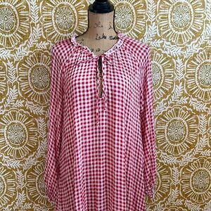 This Maxi dress is lightweight and high on the shoulders with an open v-neck and drawstring. If you’re looking for a comfortable, yet cute dress then this Gingham pattern is the perfect match!
