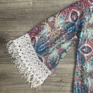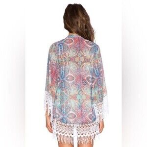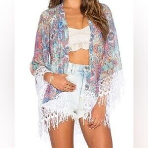 Show Me Your Mumu Alsten Kimono Colorful Paisley White Lace Fringe Small