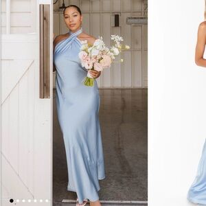 The Amanda Maxi dress is an ultra flattering high neckline maxi with an open back and a cinched empire waist with elastic in the back.