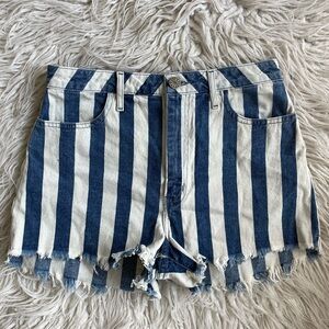 Show Me Your Mumu Arizona Sedona Striped Denim High Waisted Jean Shorts EUC 29